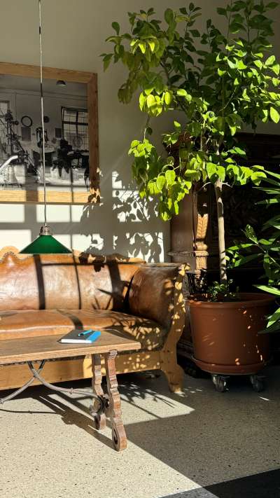 Nehmen Sie Platz an diesem wundervollen Platz und machen Sie es sich gemütlich. Mit einem Buch oder einem Getränk auf dem alten Lederkanapee, mit Blick auf das rege Treiben auf der Hugo-von-Königsegg-Straße. Bei schönem Wetter öffnen wir die schmiedeeisernen Flügeltüren und erweitern den Raum nach draußen.